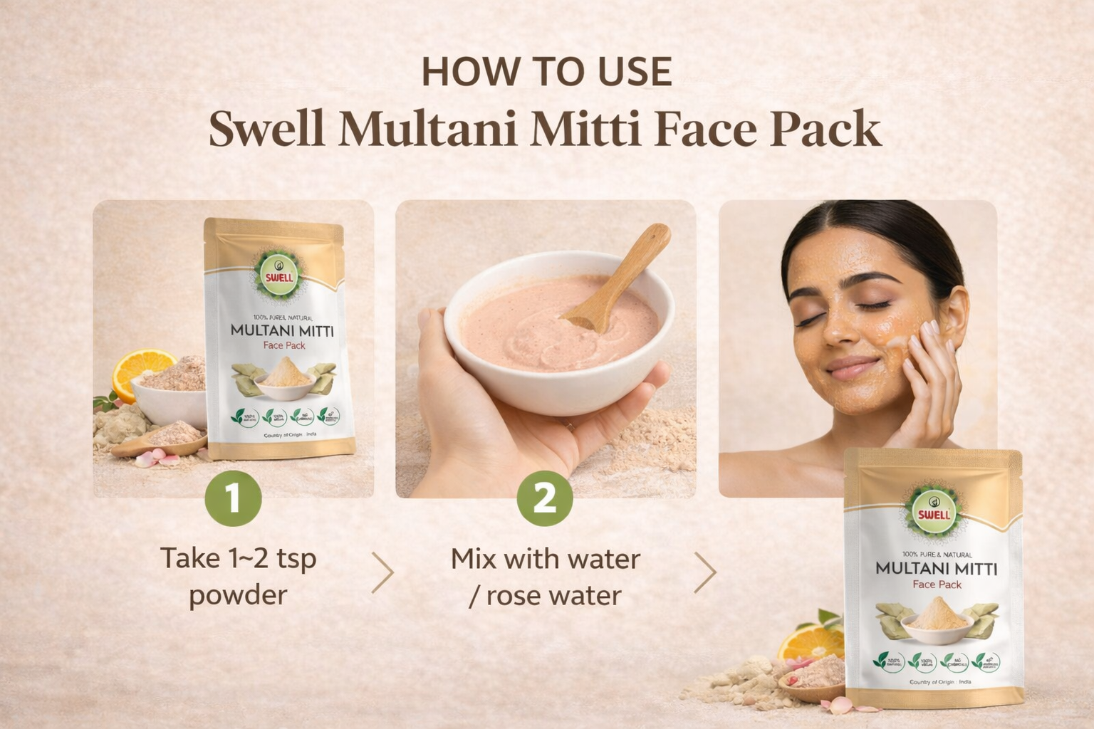 In stock+2Swell Sandal Multani Mitti Face Pack“Mitti ki shakti, Natural glow ki guarantee.” 🌿Face Pack100g0.0₹99